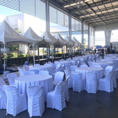 แน่นอนว่าทำบุญบ้านนั้นเราก็ต้องจัดงานในบ้าน แต่หากต้องการมีพื้นที่เพิ่มสำหรับรับแขกหรือสำหรับนั่งรับประทานอาหาร การเช่าเต็นท์จัดงานนั้นเป็น checklist ที่สำคัญมากๆ เพราะนอกจากจะช่วยเพิ่มพื้นที่ในการจัดงาน และยังเป็นการจัดการพื้นที่ให้เป็นสัดส่วน เช่น เช่าเต็นท์สำหรับวางโต๊ะจีน เช่าเต็นท์สำหรับทำอาหาร หรืออาจจะเป็นเช่าเต็นท์สำหรับจัดชุดพิธีสงฆ์ให้พระสงฆ์นั่งฉันอาหารในเต็นท์